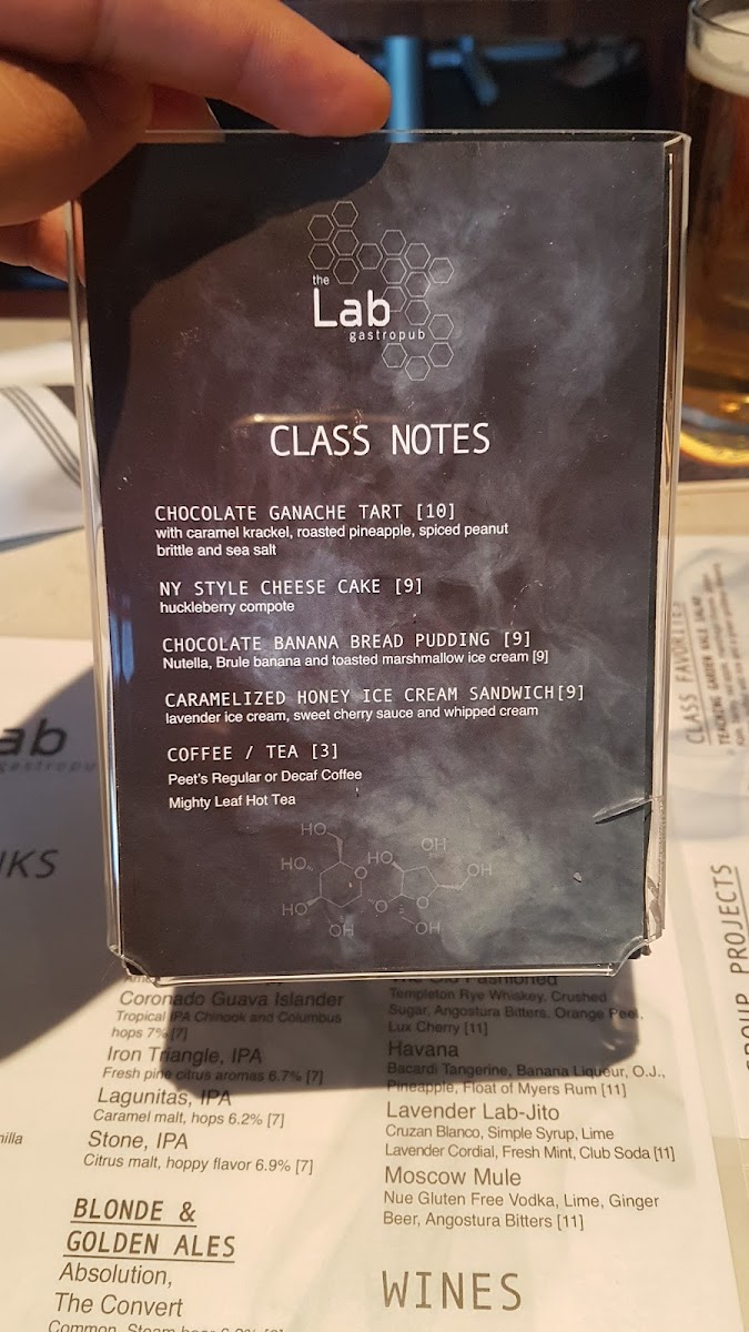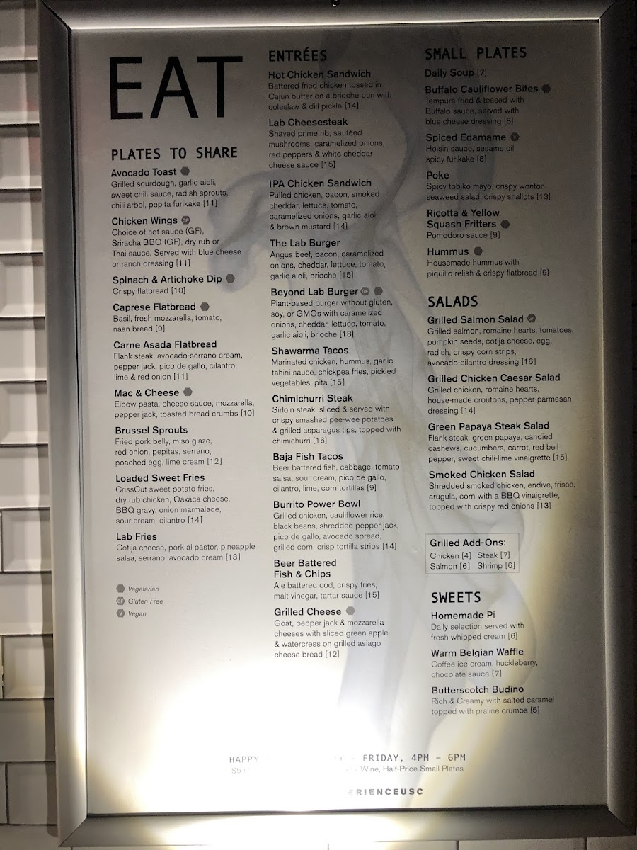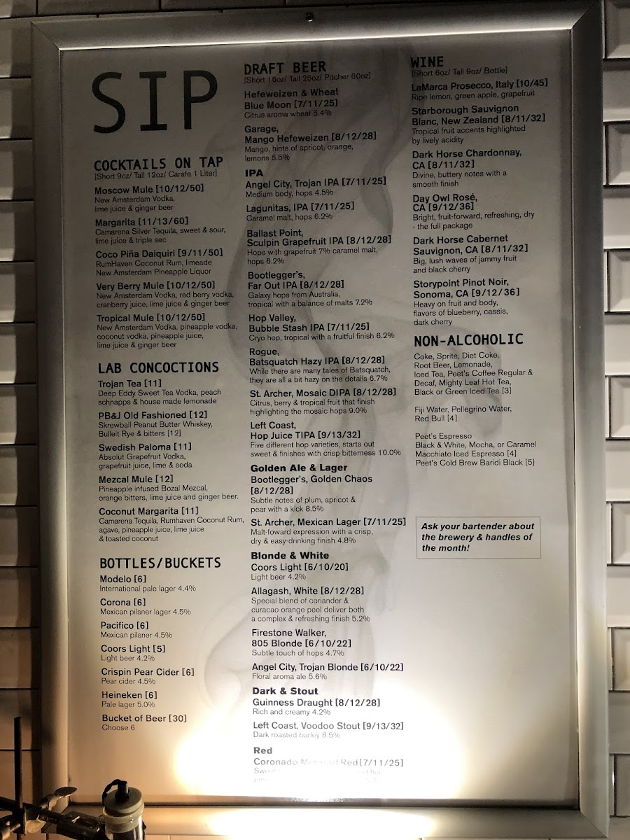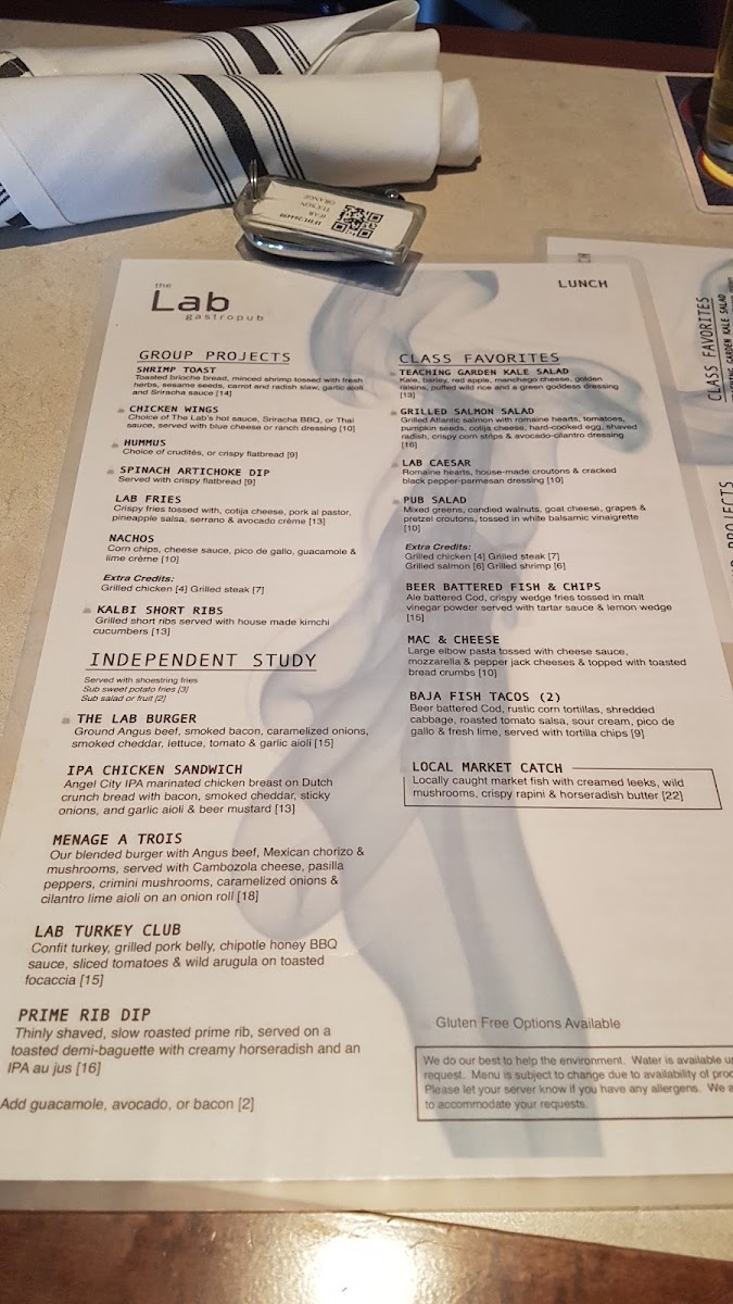 From shareable starters like the creamy spinach and artichoke dip or crispy chicken wings to hearty options such as The Lab Burger or the IPA chicken sandwich, the menu invites easy ordering and communal dining. Lighter plates like avocado toast or spiced edamame provide a fresh counterpoint to more indulgent treats, while loaded fries and flatbreads make great companions to cold drafts and craft cocktails.